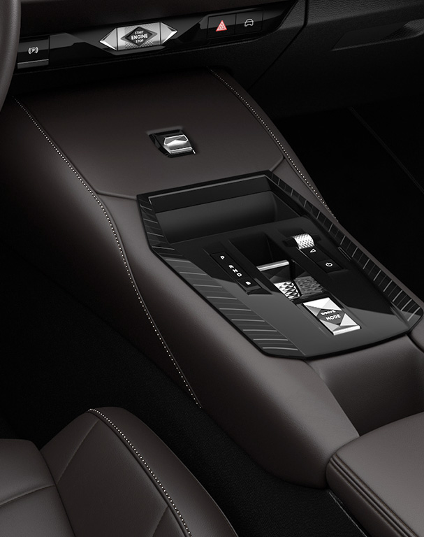 - DS E-TOGGLE (i) DS E-TOGGLE – der elegante, elektronische Gangwahlhebel in der Mittelkonsole ermöglicht per Fingertipp das Wechseln zwischen den Fahrmodi.